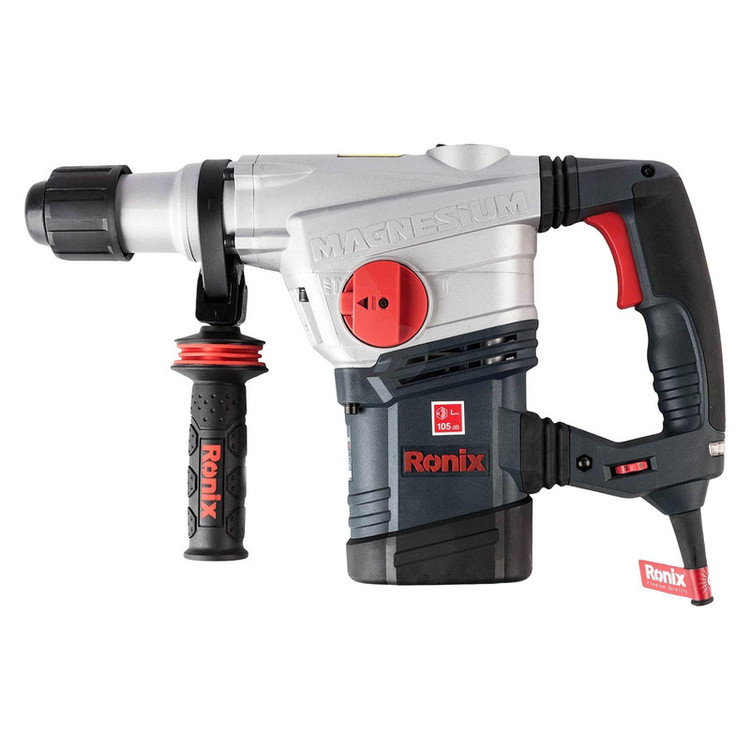 چنانچه به دنبال دریل بتن کن هستید، میتوانید محصول شرکت «Ronix» «رونیکس» را انتخاب کنید. این دریل بتن کن تحت عنوان مدل (2740) به بازار عرضه شده است. منبع تغذیه این ابزار برق بوده، ولتاژ آن 220 ولت و دارای ابزارگیر پنج شیار است. اقلام همراه این دریل بتن کن عبارتند از: کیف، دفترچه راهنما، دو عدد مته چکشی و سه عدد مته چرخشی، گریس، دسته جانبی، میله عمق سنج، درپوش غبارگیر و آچار مخصوص. وزن این ابزار 6.8 کیلوگرم است. سرعت گردش آزاد این محصول 450 دور بر دقیقه بوده، نرخ ضربه آن 2800 ضربه در دقیقه و توان آن 1250 وات است. حداکثر قطر سوراخکاری در مصالح این محصول 40 میلیمتر است و قابلیت وارد آوردن 10 ژول انرژی در هر ضربه را دارد. این دستگاه به هنگام کار نیروی بسیار زیادی را وارد میکند و دارای استاندارد ISO 9001: 2008 بوده و از عملکرد بسیار خوبی برخوردار است.
