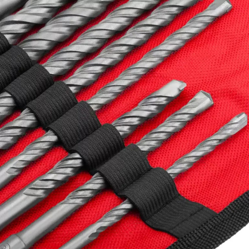 این مجموعه امکان سوراخکاری تا عمق 390 میلیمتر را فراهم میکند. بدنهی متهها و قلمها از آلیاژ کروم وانادیوم ساخته شده و نوک آنها از تنگستن کارباید با گرید کیفی بالا است.