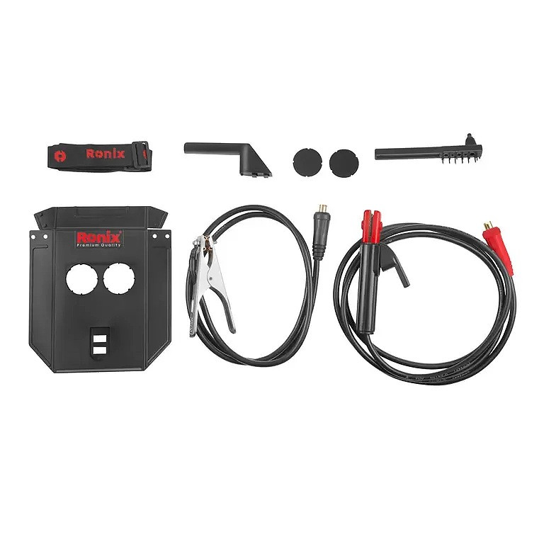 فرچه تمیز کاری, انبر جوش با کابل مسی, انبر اتصال با کابل مسی, ماسک القام همراه این دستگاه هستند.
