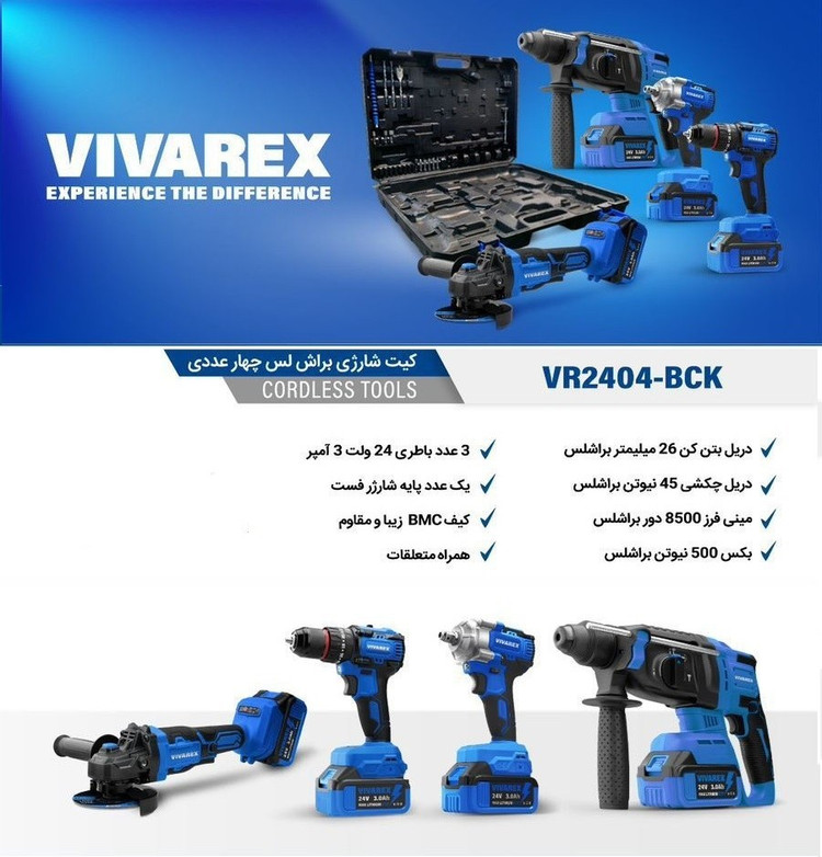 کیت شارژی براشلس 4 عددی ویوارکس مدل VR2404-BCK